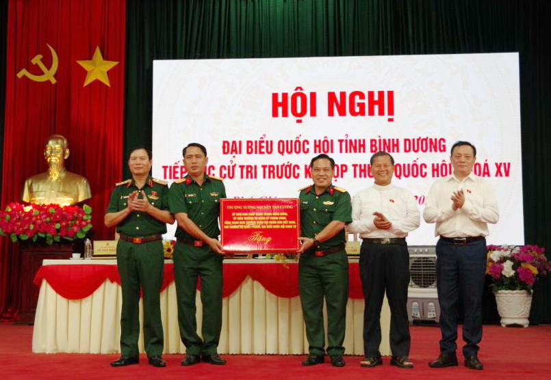 Chiều 13.5, Thượng tướng Nguyễn Tân Cương- Uỷ viên Trung ương Đảng, Uỷ viên Thường vụ Quân uỷ Trung ương, Tổng Tham mưu trưởng Quân đội nhân dân Việt Nam, Thứ trưởng Bộ Quốc phòng, cùng Đoàn đại biểu Quốc hội tỉnh Bình Dương tiếp xúc cử tri là cán bộ, chiến sĩ Trung đoàn 271, Sư đoàn 5, Quân khu 7 trước kỳ họp thứ 7, Quốc hội khoá XV.