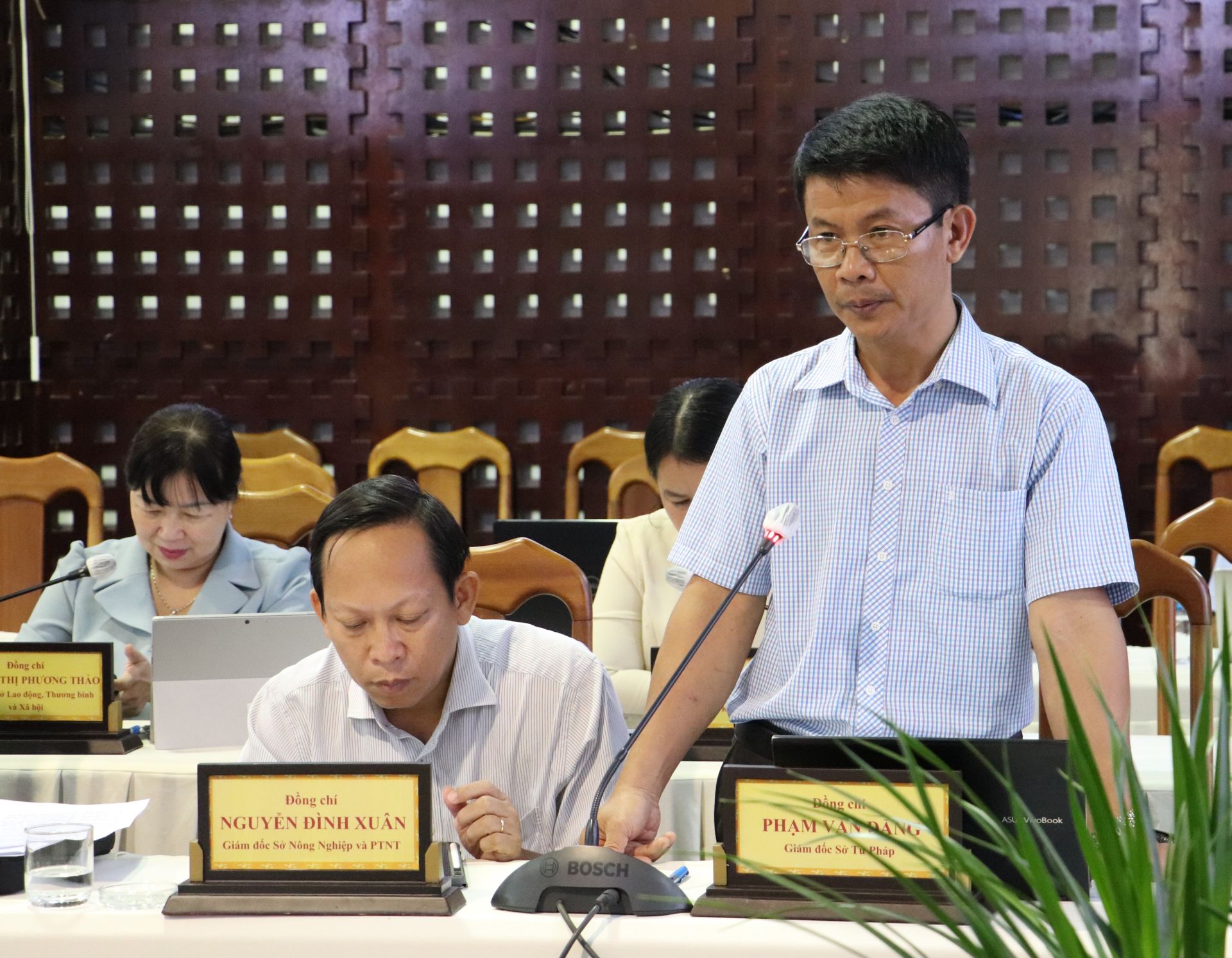 Ông Phạm Văn Đặng - Giám đốc Sở Tư pháp phát biểu tại phiên họp.