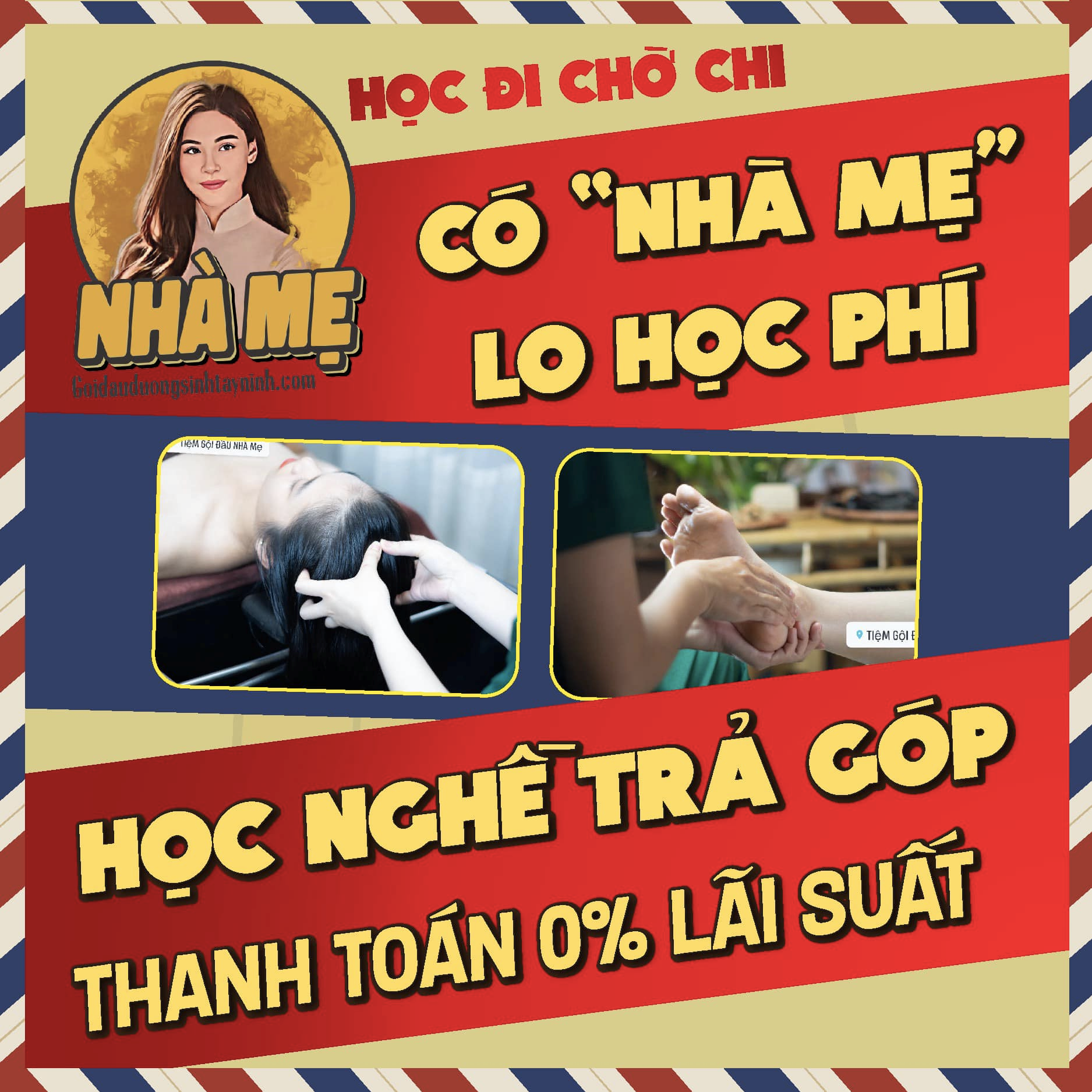 Luôn nỗ lực có thể phát huy và đưa phương pháp gội đầu dưỡng sinh đến gần hơn với mọi người, Tiệm Gội Đầu Nhà Mẹ đang cung cấp nhiều khóa học cho học viên. Với mong muốn phá tan rào cản - tự tin sải bước khi ra nghề, Tiệm Gội Đầu Nhà Mẹ đã tạo những điều kiện tốt nhất cho học viên. Hỗ trợ học viên có thể trả học phí sau với chương trình trả góp 0% học phí. Những học viên có hoàn cảnh khó khăn sẽ được miễn phí 100% khi theo học tại Tiệm Gội Đầu Nhà Mẹ.