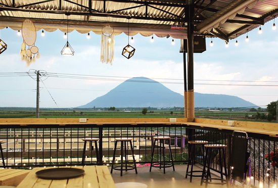 Cùng sự đơn giản, thoải mái trong không gian mở, điểm nhấn ấn tượng của quán chính là tầm nhìn hướng về Núi Bà Đen.