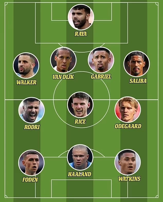 Đội hình tiêu biểu của Ngoại hạng Anh 2023/24 do PFA lựa chọn. (Nguồn: Daily Mail)