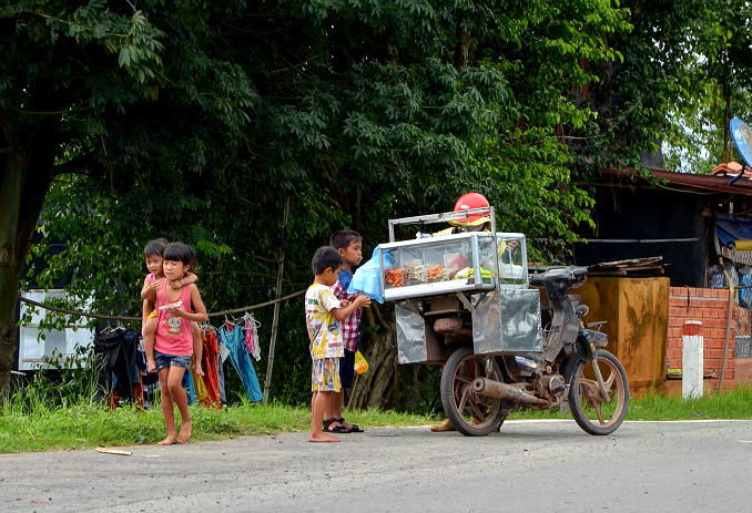 Nhiễu loạn. Lộn xộn. Họ như sợ ai giành lấy khoảng không gian chật hẹp mà huyên náo giữa lòng phố xá. Làm người mua cũng mất phương hướng, không biết đâu mà lần. Còn vào tận các xóm ấp, người bán (cả mua) hàng dạo thường đi bằng xe máy- thậm chí có cả ô tô con, xe bán tải. Bán và mua từ thượng vàng đến hạ cám. Nào là “Bánh mì Sài Gòn đặc ruột thơm bơ hai ngàn một ổ” đến “Bánh bông lan mười ngàn ba cái”.