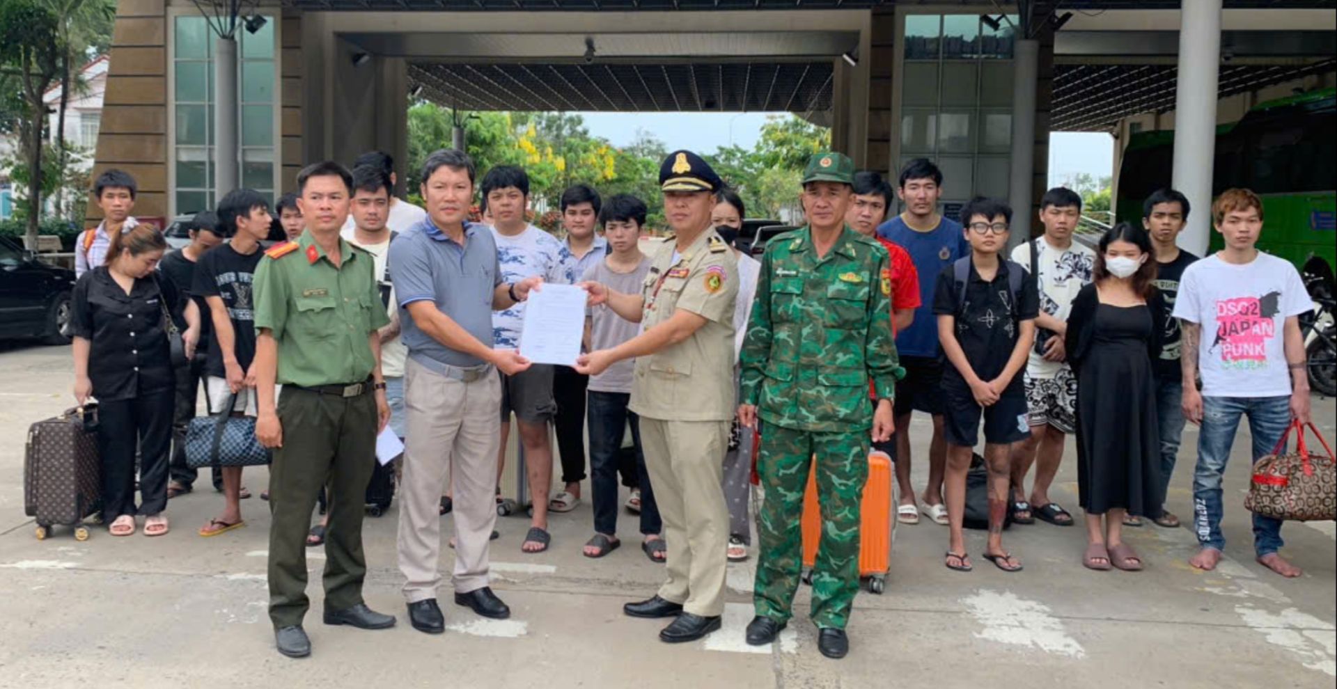 Lực lượng chức năng Campchia trao trả 21 công dân Việt Nam lao động trái phép.