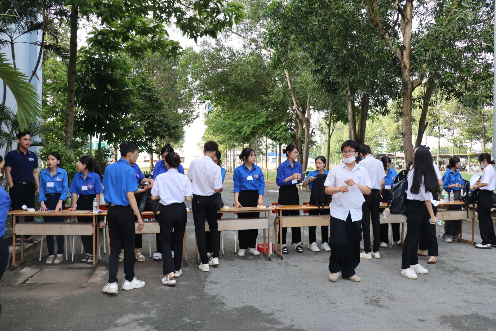 Chị Hồ Thuỵ Thuỳ Dương– Phó Bí thư Đoàn trường THPT Nguyễn Chí Thanh cho biết, do đặc thù địa hình của trường khá rộng, nhiều dãy lầu, khu vực thi lại cách xa cổng vào nên đội thực hiện bố trí xây dựng sân bãi và lực lượng riêng biệt, phù hợp với từng khu vực.
