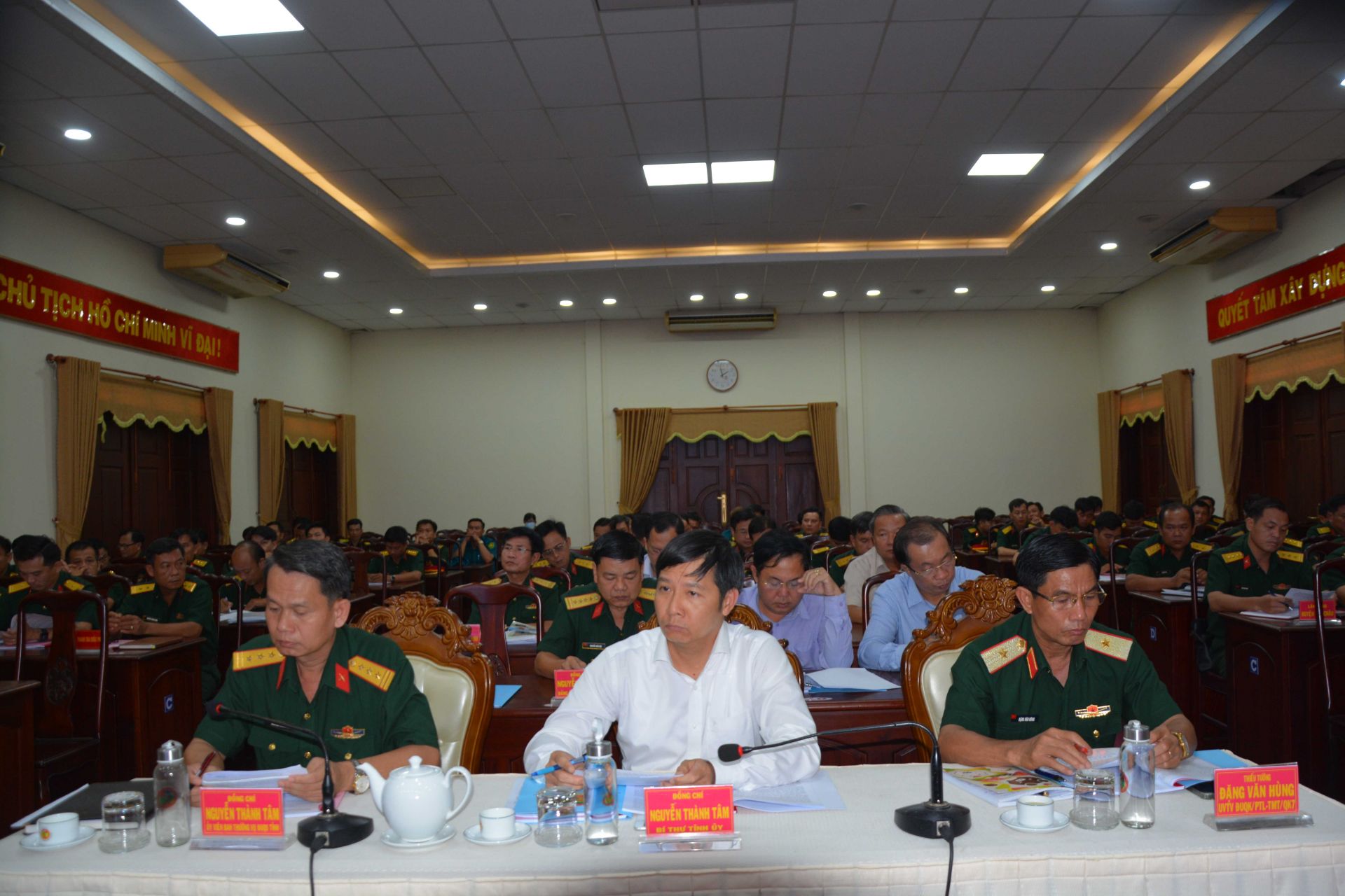 Phát biểu chỉ đạo tại hội nghị, Bí thư Tỉnh ủy, Bí thư Đảng ủy Quân sự tỉnh Nguyễn Thành Tâm chúc mừng và biểu dương thành tích trong huấn luyện, xây dựng đơn vị vững mạnh toàn diện, “mẫu mực, tiêu biểu” của LLVT tỉnh nhà trong thời gian qua.