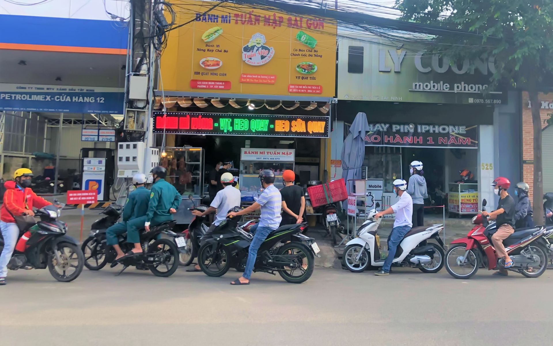 Một cửa hàng bánh mì tại thành phố Tây Ninh thường xuyên tập trung đông khách mua hàng, chưa đảm bảo quy tắc 5K.