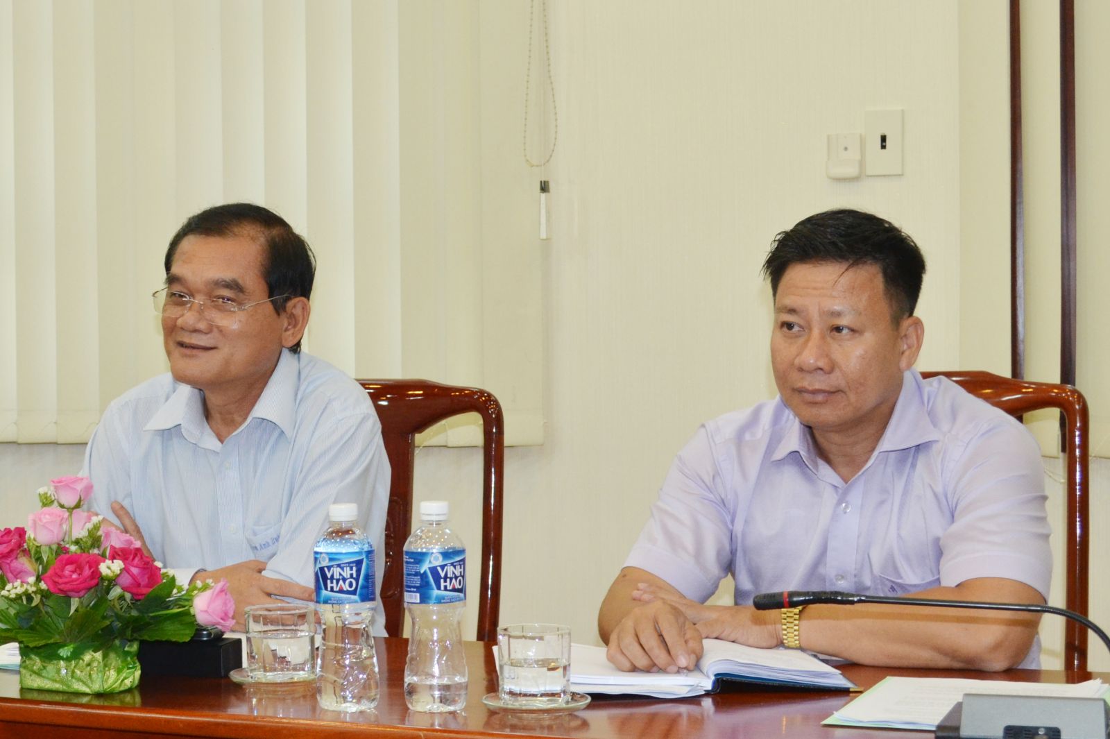 | Phó Bí thư Thường trực Tỉnh ủy Nguyễn Minh Tân (trái) và Phó chủ tịch UBND tỉnh Nguyễn Thanh Ngọc tại buổi làm việc với Trung ương Hội Chữ thập đỏ Việt Nam. |