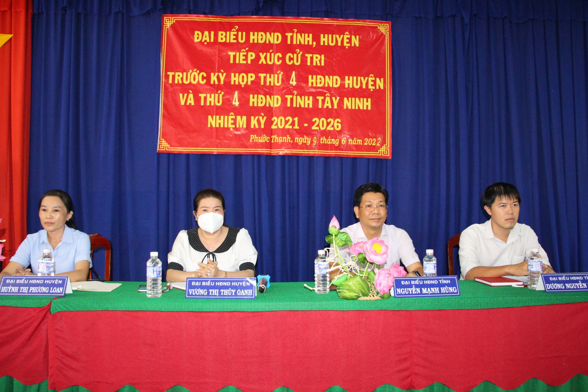 Chiều 9.6, tổ đại biểu HĐND tỉnh có ông Nguyễn Mạnh Hùng- Phó Bí thư Tỉnh uỷ, ông Dương Nguyễn Phúc- chuyên viên văn phòng Ban Quản lý dự án đầu tư xây dựng ngành giao thông tỉnh cùng đại biểu HĐND huyện Gò Dầu có buổi tiếp xúc cử tri xã Phước Thạnh.