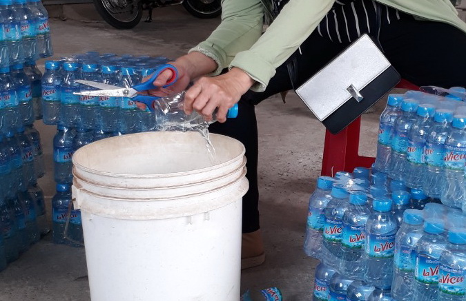 Cơ sở sản xuất nước đóng chai nhãn hiệu Laview tự tiêu huỷ sản phẩm vi phạm bản quyền.