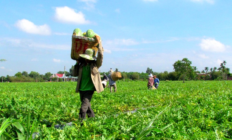 Quy mô sản xuất nông nghiệp của Tây Ninh còn nhỏ và phân tán (Ảnh minh hoạ: Nông dân thu hoạch dưa hấu).