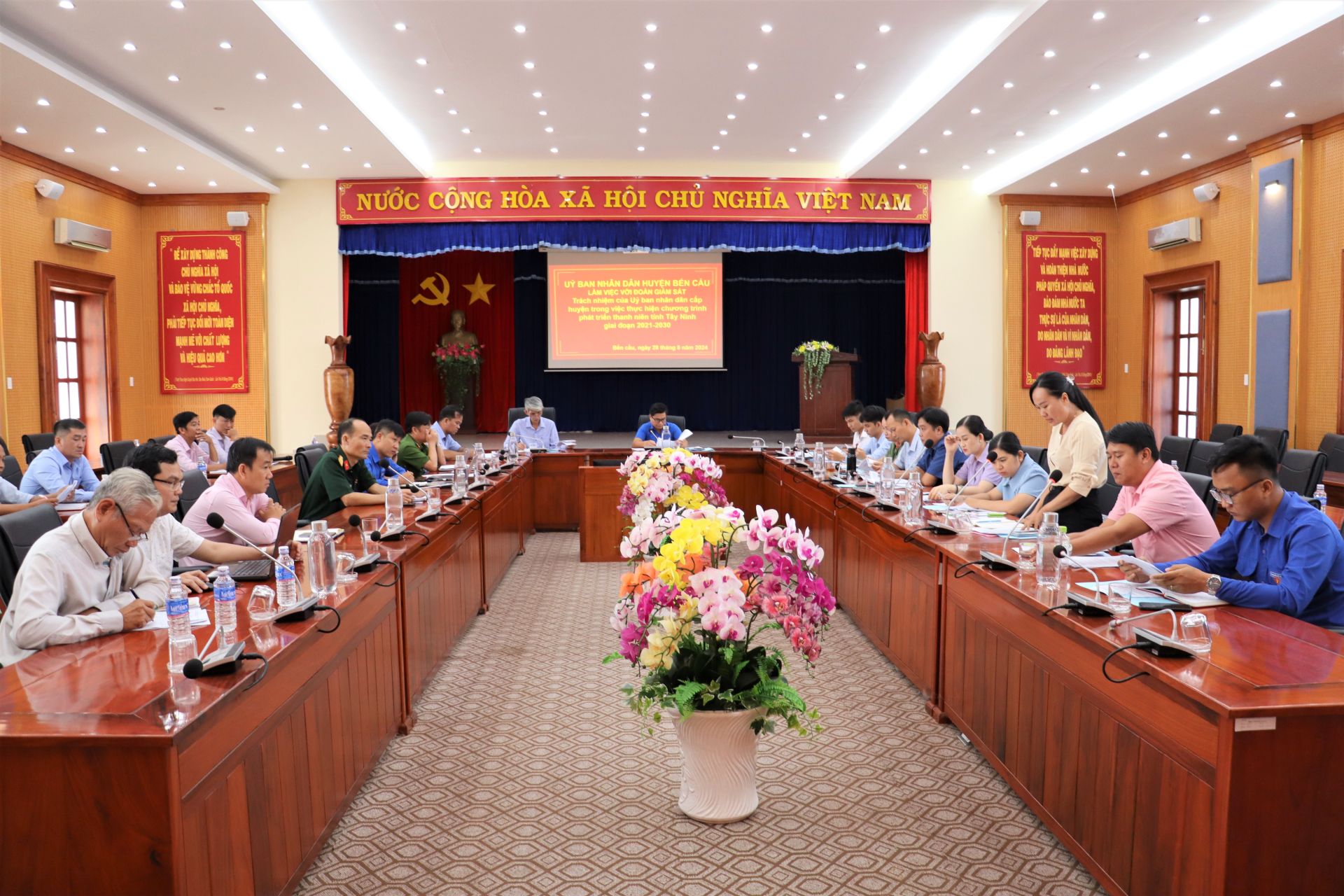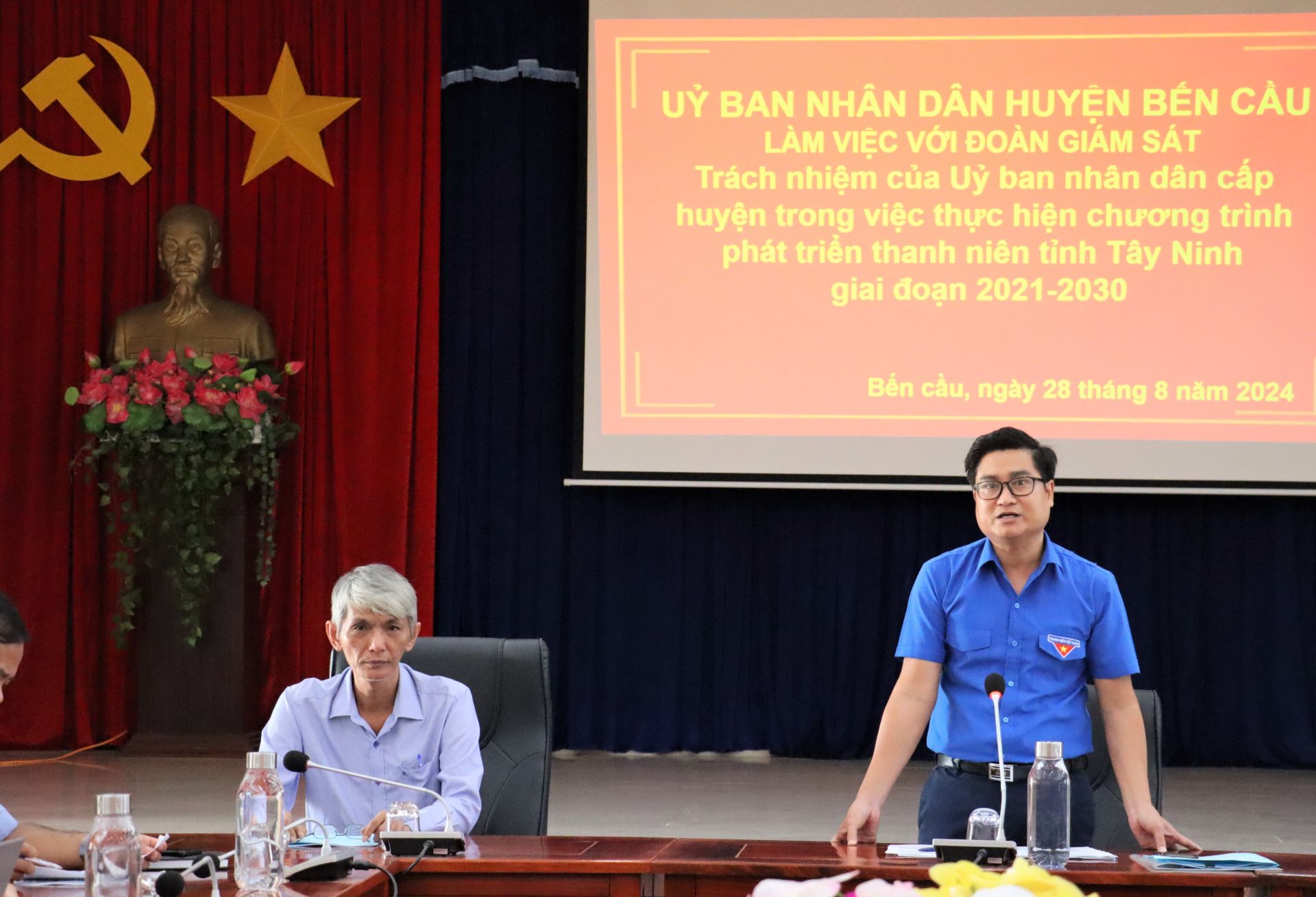 Đoàn công tác làm việc cùng UBND huyện Bến Cầu về 2 mục tiêu trong Chương trình phát triển thanh niên tỉnh Tây Ninh giai đoạn 2021-2030, gồm mục tiêu 3 - Nâng cao chất lượng đào tạo nghề, tạo việc làm bền vững và mục tiêu 5 - Nâng cao đời sống văn hoá, tinh thần cho thanh niên.