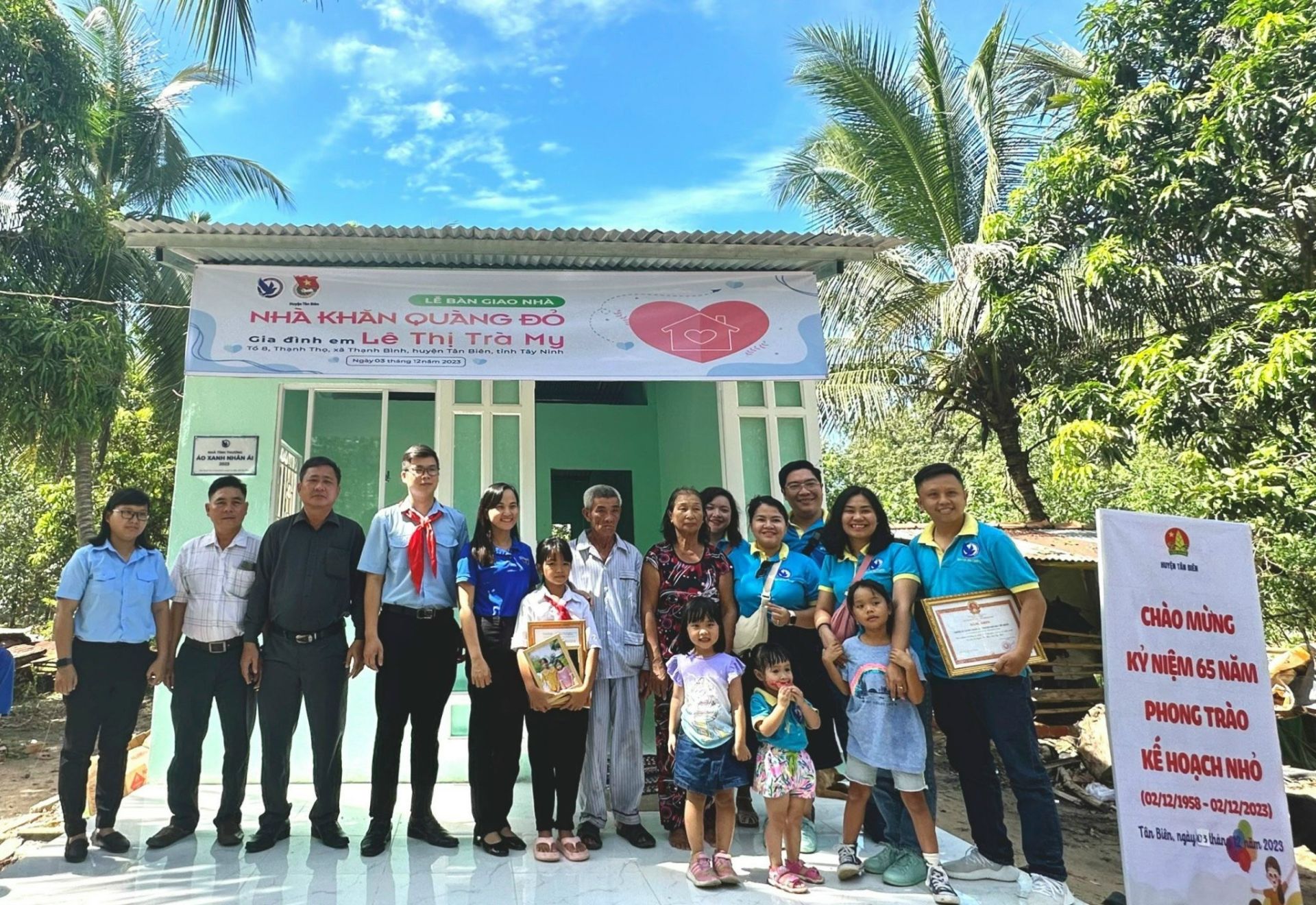 Hội đồng Đội huyện Tân Biên trao tặng Nhà khăn quàng đỏ cho học sinh, đội viên có hoàn cảnh khó khăn.