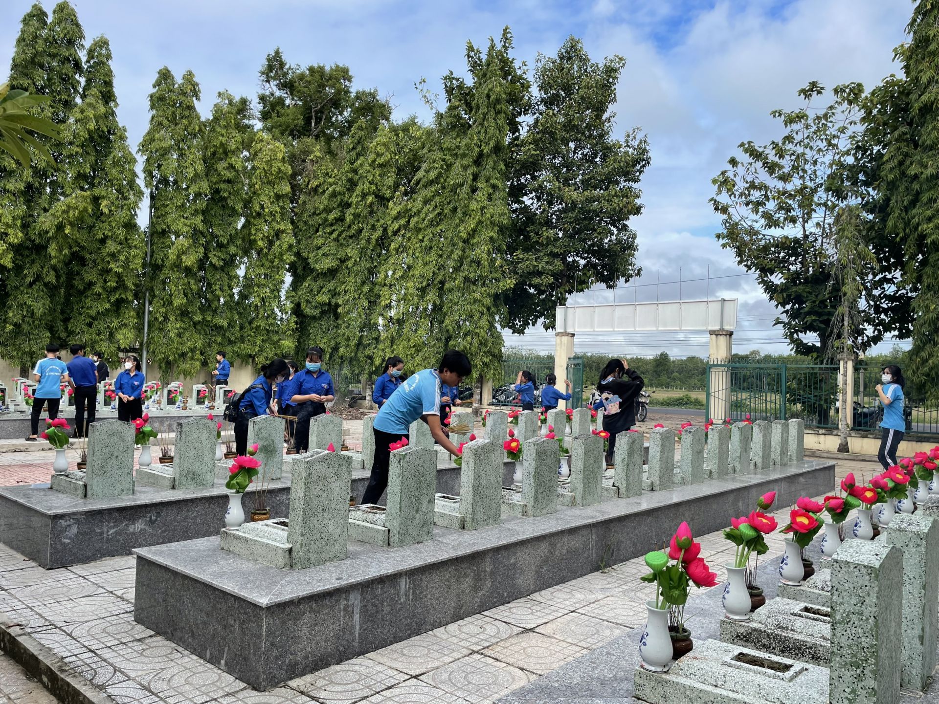 ĐVTN dâng hương các anh hùng liệt sĩ nghĩa trang liệt sĩ xã Hoà Hội, huyện Châu Thành.
