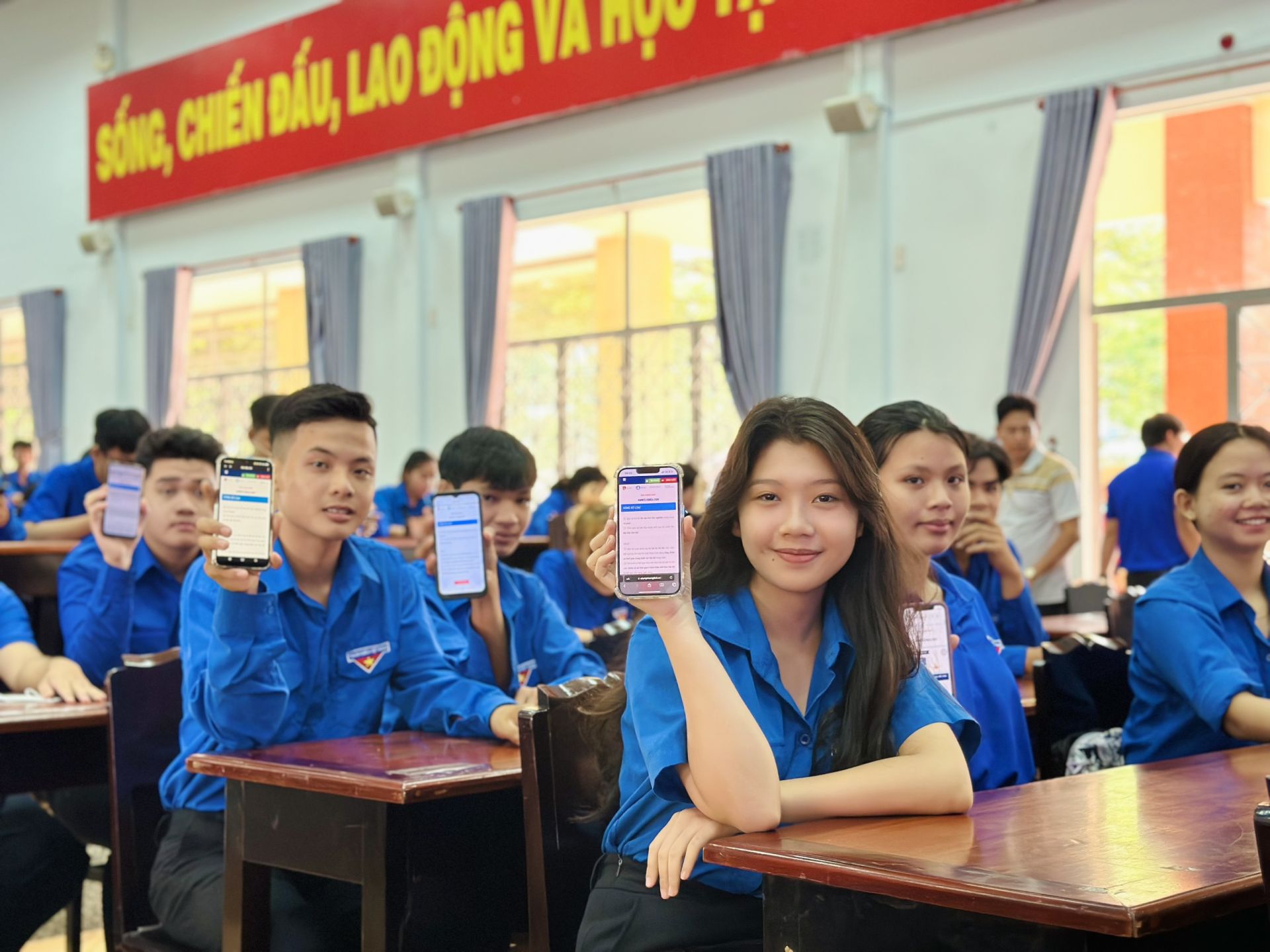 Đông đảo đoàn viên thanh niên tham gia vòng sơ loại trực tuyến sau lễ phát động.