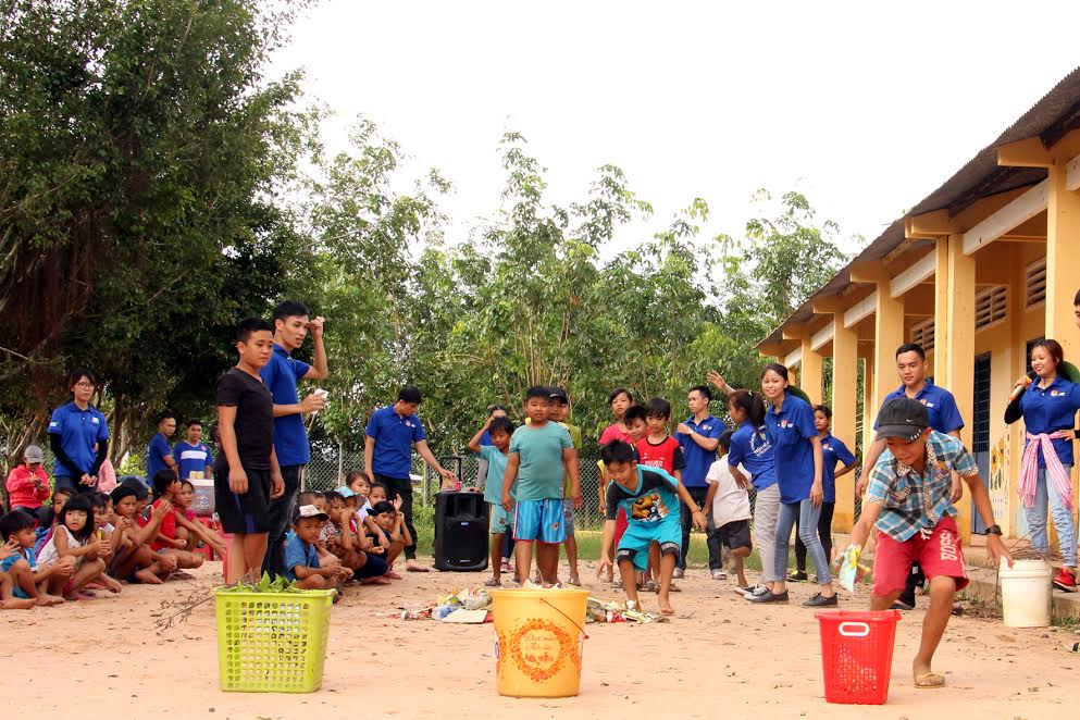 Sinh viên tình nguyện tổ chức sân chơi cho trẻ em địa phương. |