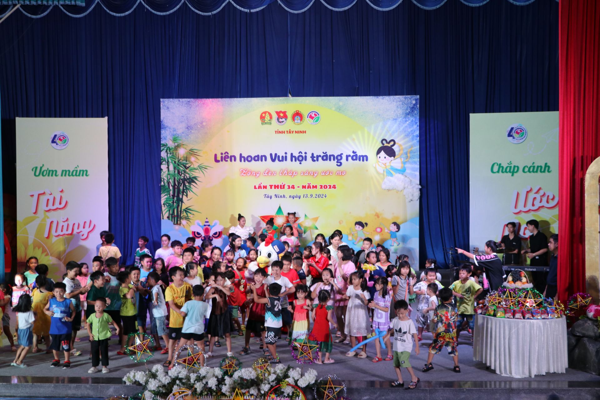 Tối 13.9, tại Trung tâm Học tập, sinh hoạt thanh thiếu nhi tỉnh Tây Ninh, Tỉnh đoàn phối hợp với Sở Lao động - Thương binh và Xã hội tổ chức chương trình Liên hoan Vui hội trăng rằm “Lồng đèn thắp sáng ước mơ” lần thứ 34 năm 2024 cho tất cả các em thiếu nhi, học sinh trên địa bàn tỉnh.