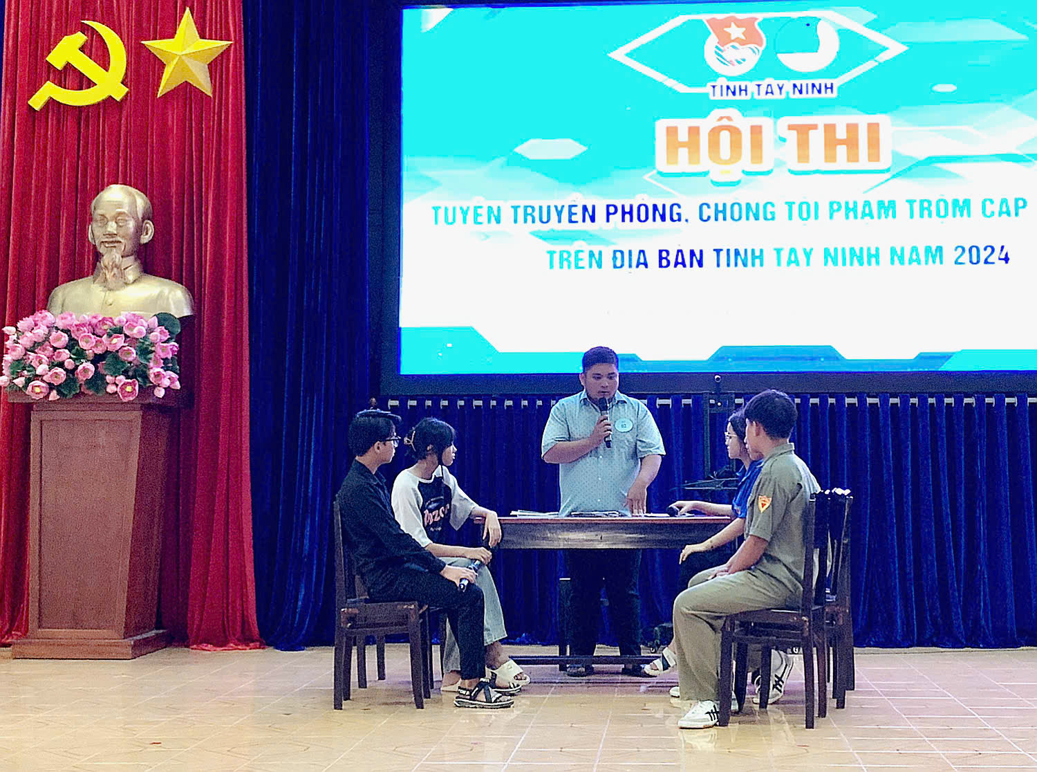 Mới đây, tại hội trường UBND huyện Gò Dầu, Tỉnh đoàn phối hợp Huyện đoàn Gò Dầu tổ chức hội thi tuyên truyền “Phòng, chống tội phạm trộm cắp tài sản trên địa bàn tỉnh Tây Ninh" năm 2024 bằng hình thức biểu diễn tiểu phẩm ngắn. Tham dự hội thi có anh Trần Đăng Tiến- Phó Bí thư Tỉnh đoàn, Chủ tịch Ủy ban Hội LHTN Việt Nam tỉnh.