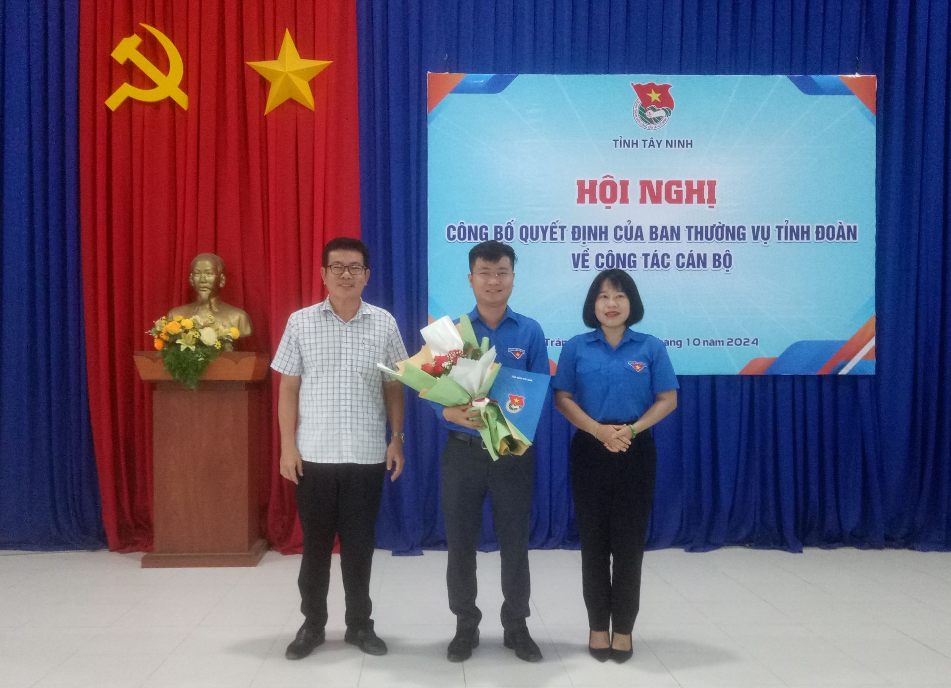 Chiều 21.10, tại thị xã Trảng Bàng, Ban Thường vụ Tỉnh đoàn Tây Ninh tổ chức lễ công bố và trao quyết định về công tác cán bộ.