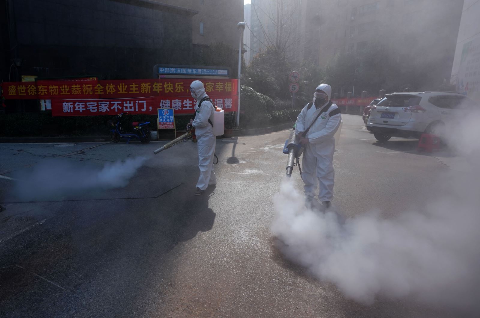 Phun thuốc khử trùng nhằm ngăn chặn sự lây lan của COVID-19 tại Vũ Hán, tỉnh Hồ Bắc, Trung Quốc, ngày 5/3/2020. Ảnh: THX/ TTXVN