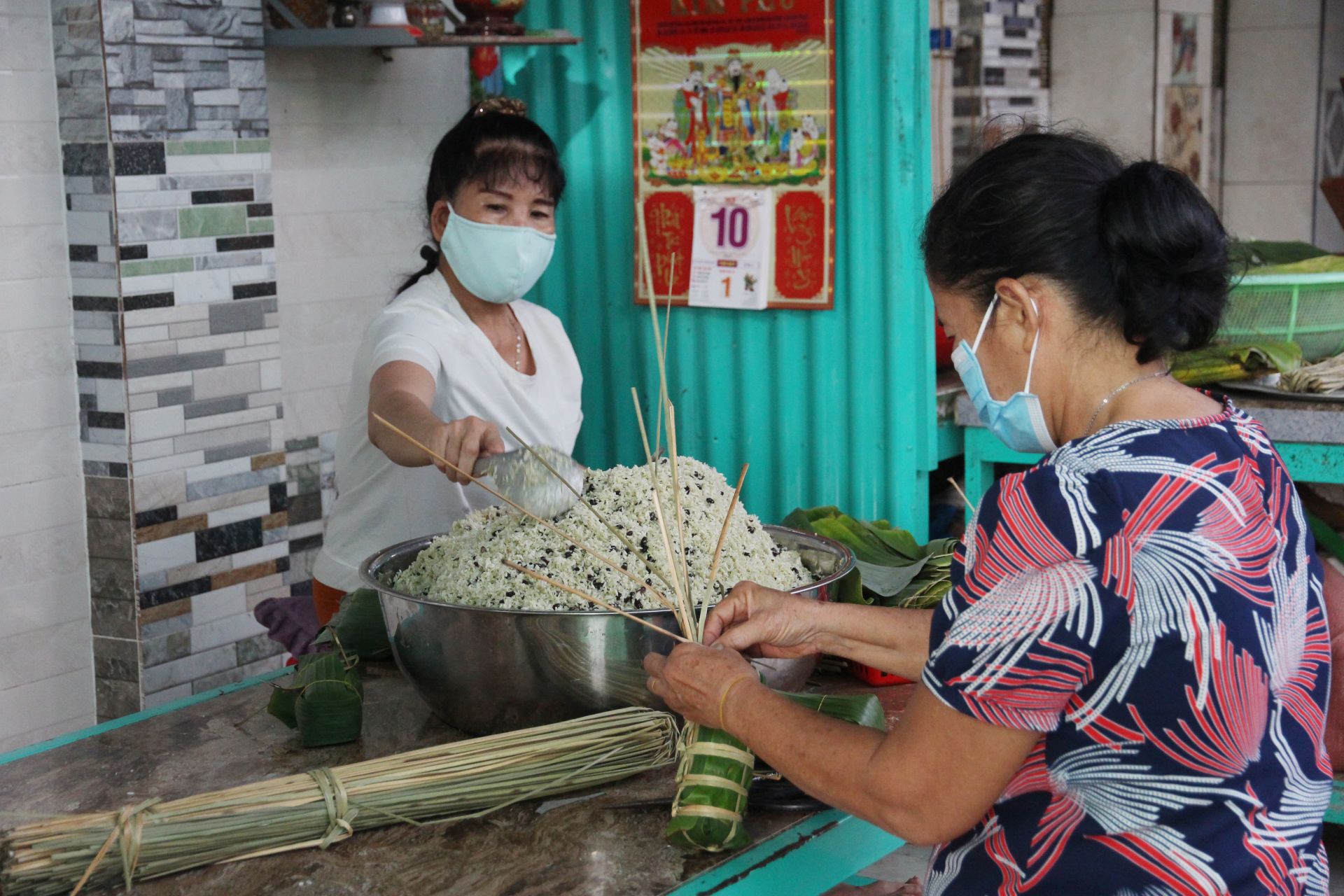 Mọi người gói bánh tét hỗ trợ cho thành phố Hồ Chí Minh.