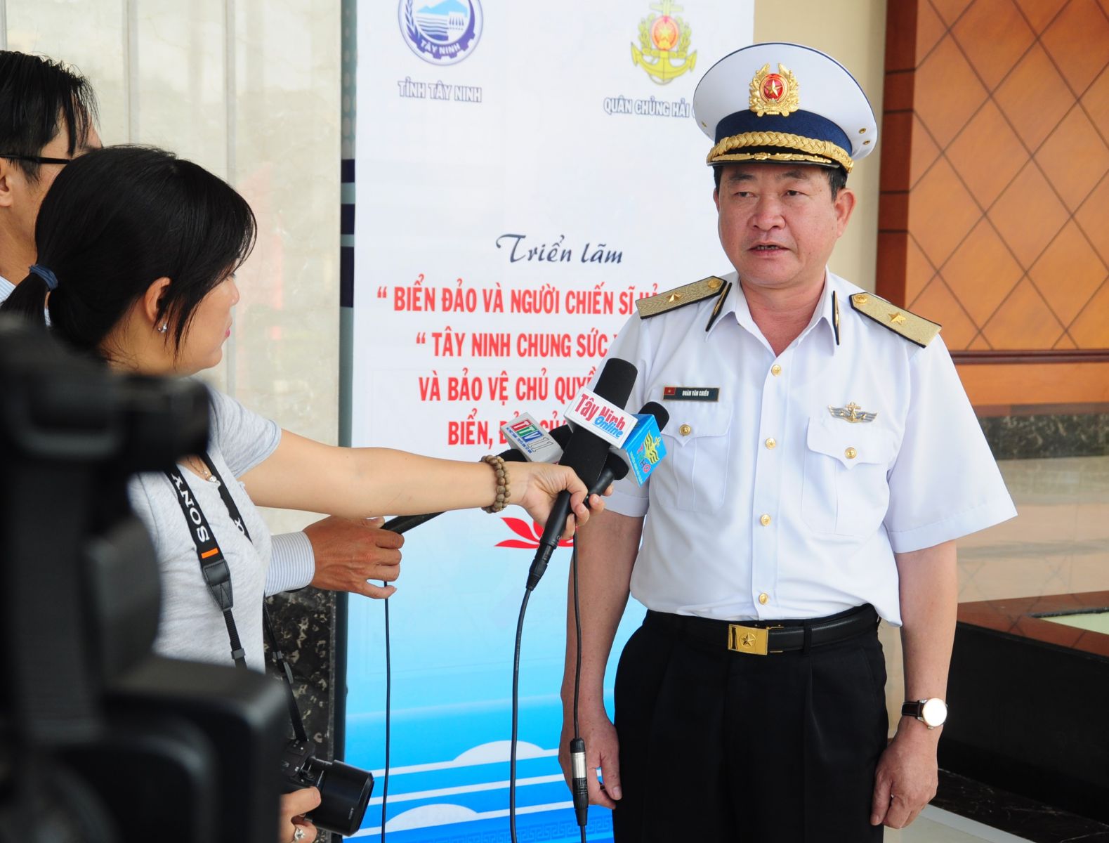 Chuẩn Đô đốc Đoàn Văn Chiều- Phó Chủ nhiệm Chính trị Hải quân trả lời phóng vấn báo chí chiều 21.6