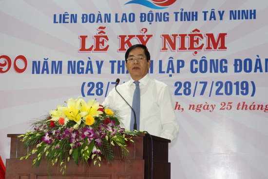 Phát biểu tại buổi lễ, ông Bùi Văn Cường- Phó Chủ tịch Liên hiệp Công đoàn thế giới, Chủ tịch Tổng LĐLĐ Việt Nam ghi nhận, biểu dương những thành tích của các cấp công đoàn, đội ngũ cán bộ, đoàn viên, công nhân, viên chức, lao động của tỉnh Tây Ninh góp phần vào sự nghiệp xây dựng, bảo vệ, phát triển địa phương.