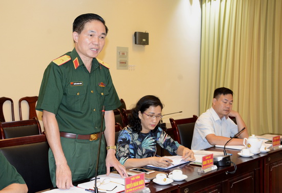 Thiếu tướng Nguyễn Hoàng Nhiên - Viện trưởng Viện Lịch sử Quân sự Việt Nam tiếp thu các ý kiến tại buổi làm việc.