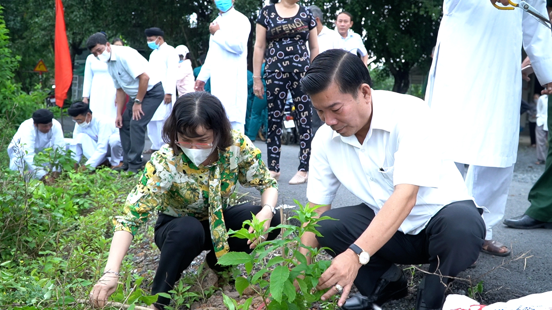 Ngay sau mít tinh, lãnh đạo UB.MTTQVN tỉnh, thành phố và địa phương cùng các lực lượng các tổ chức chính trị, xã hội, người dân xã Tân ra quân trồng gần 200 cây xanh trên tuyến đường văn phòng ấp Tân Hoà.
