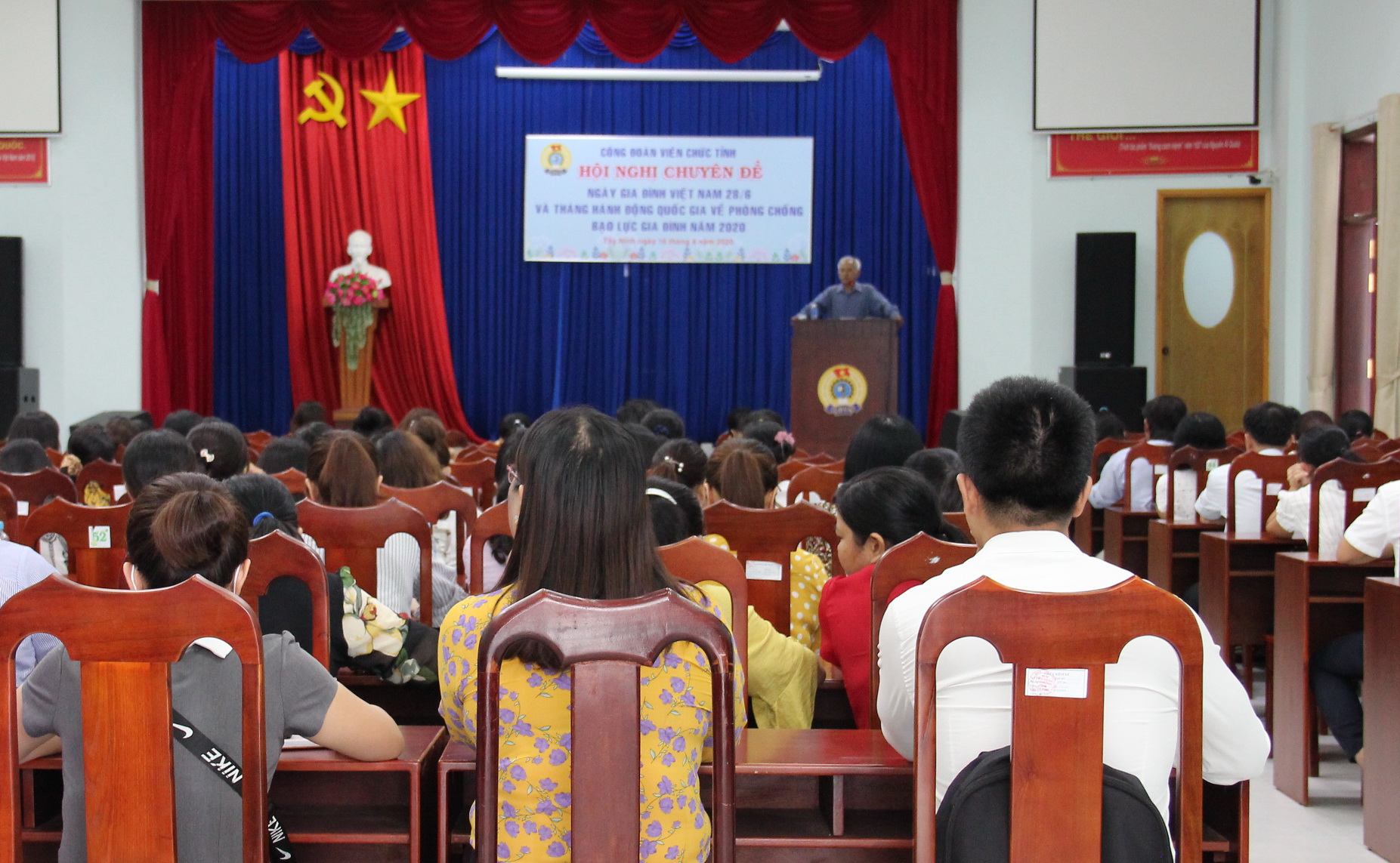 Ngày 16.6, Ban Thường vụ Công đoàn Viên chức tỉnh tổ chức Hội nghị nói chuyên đề Ngày Gia đình Việt Nam 28.6 và Tháng hành động quốc gia về Phòng, chống bạo lực gia đình, có 200 công đoàn viên tham dự.