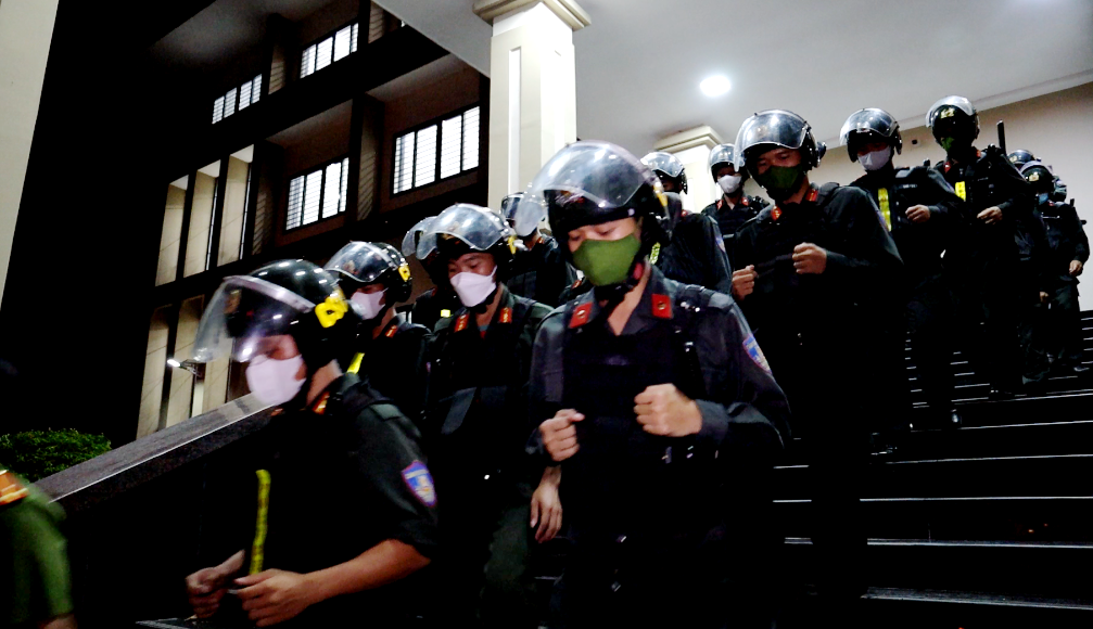 Lực lượng Cảnh sát Cơ động lên đường thực hiện nhiệm vụ.