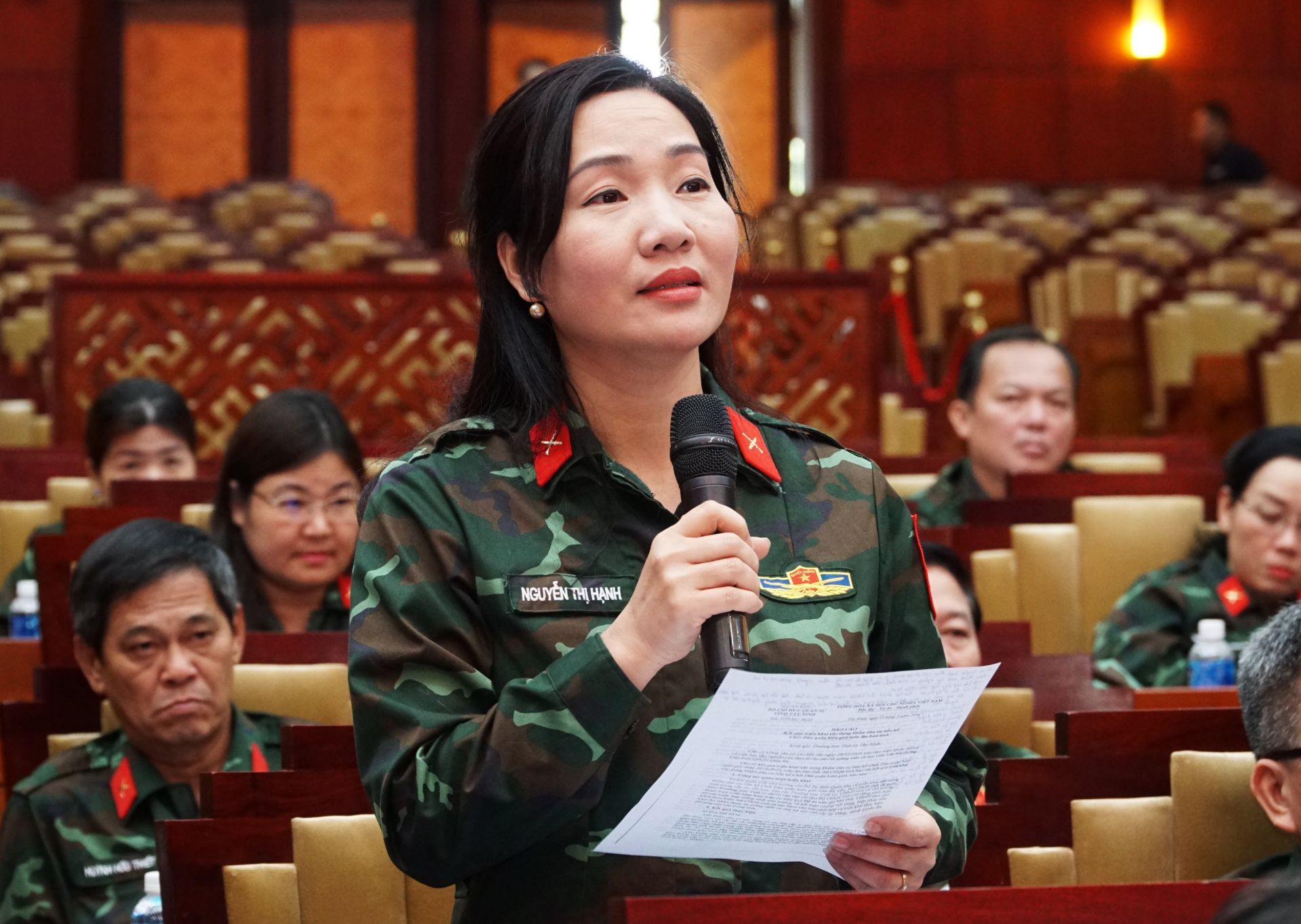 Một số thành viên Lớp bồi dưỡng kiến thức quốc phòng- an ninh khóa 94 trao đổi ý kiến với lãnh đạo tỉnh Tây Ninh.