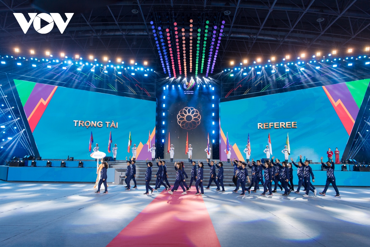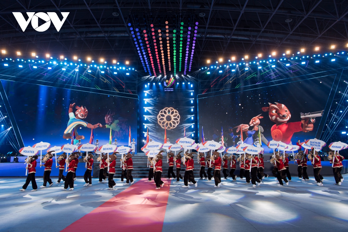 Tiếp theo là diễu hành vinh danh thành tích của 11 Đoàn Thể thao tham dự SEA Games 31.