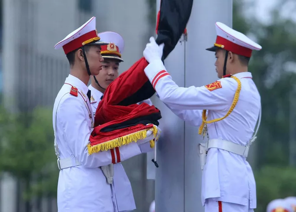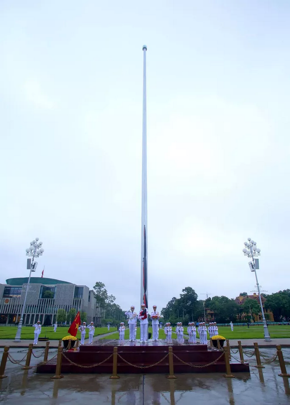 Tối nay 14-8, không có lễ hạ cờ như thường lệ mà lá cờ rủ sẽ được treo liên tục trong 2 ngày Quốc tang 14 và 15-8.