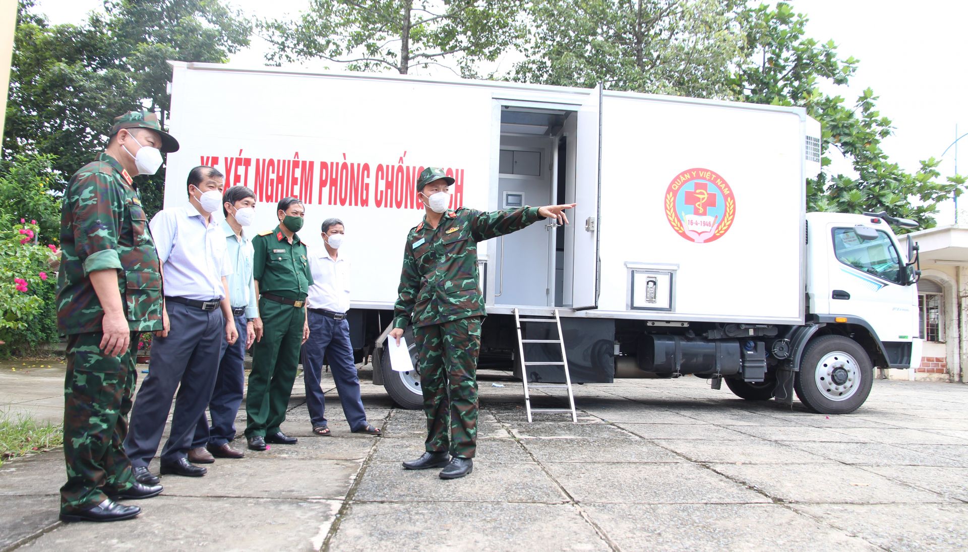 Tổng cục Hậu cần (Bộ Quốc phòng) bàn giao xe xét nghiệm lưu động cho UBND tỉnh Tây Ninh.