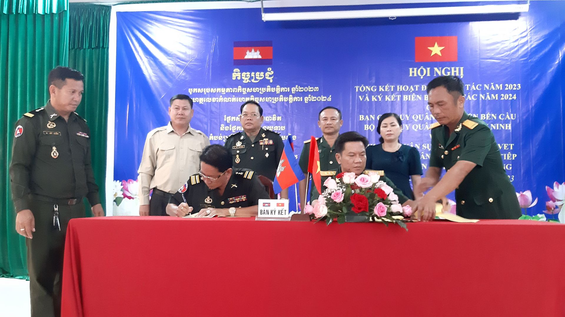 Ban Chỉ huy Quân sự huyện Bến Cầu và Chi khu Quân sự thành phố Bavet tiến hành ký kết biên bản hợp tác năm 2024.