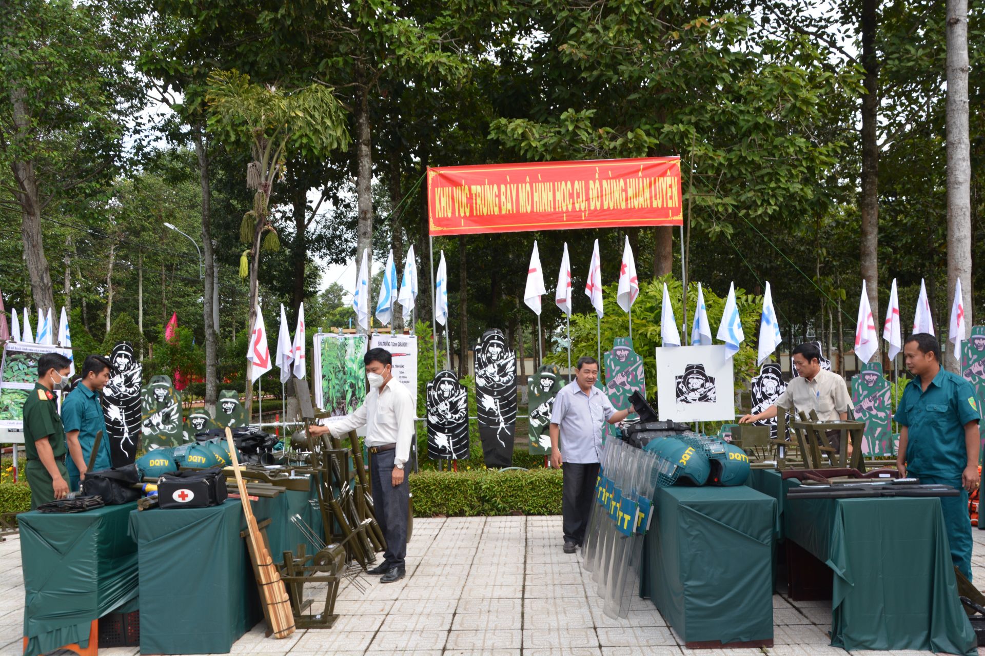 Đại biểu tham quan mô hình học cụ, đồ dùng huấn luyện của LLVT huyện Châu Thành.