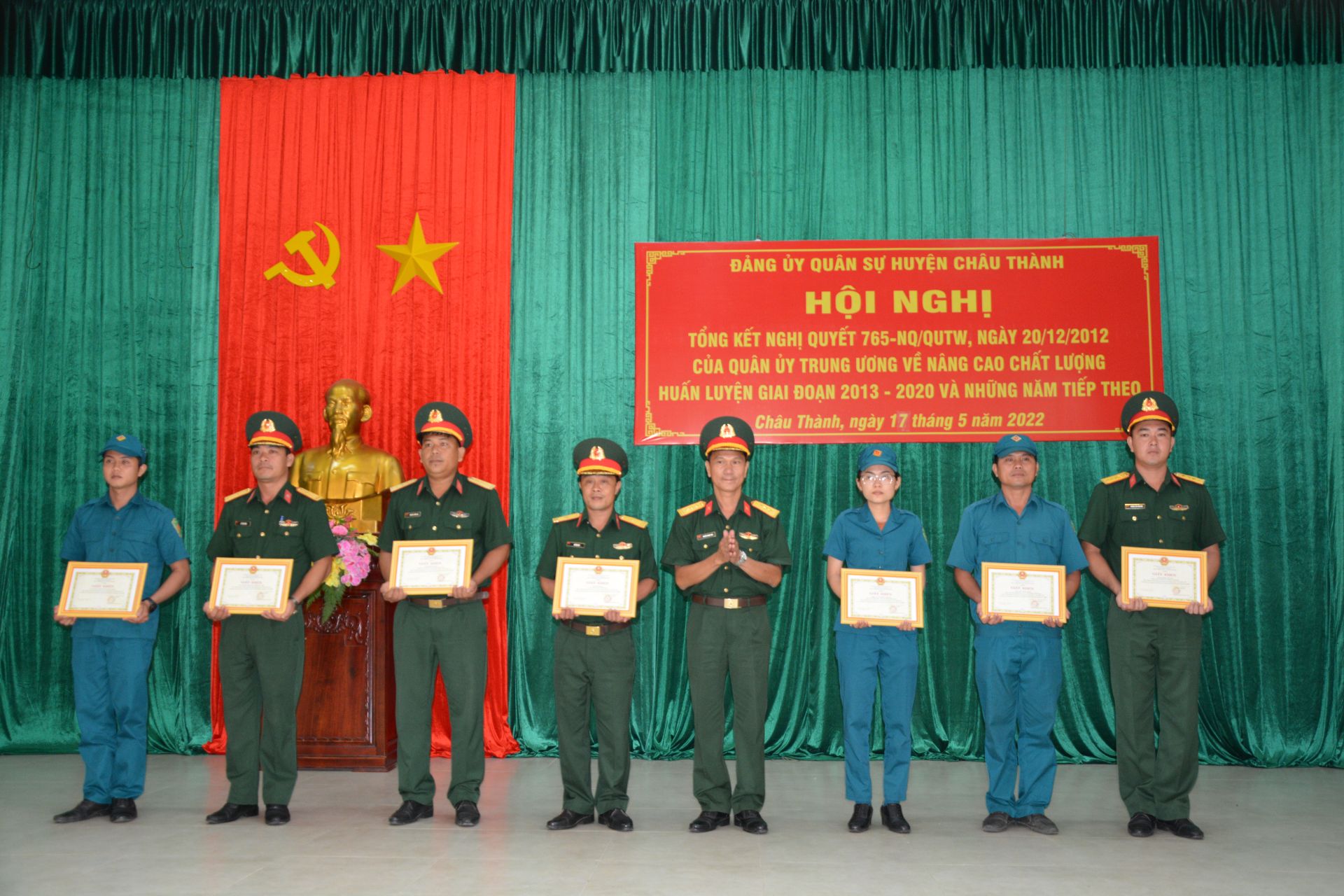 Dịp này, Ban CHQS huyện Châu Thành tặng giấy khen cho 3 tập thể, 4 cá nhân có thành tích tiêu biểu trong 10 năm thực hiện Nghị quyết 765 của Quân ủy Trung ương.