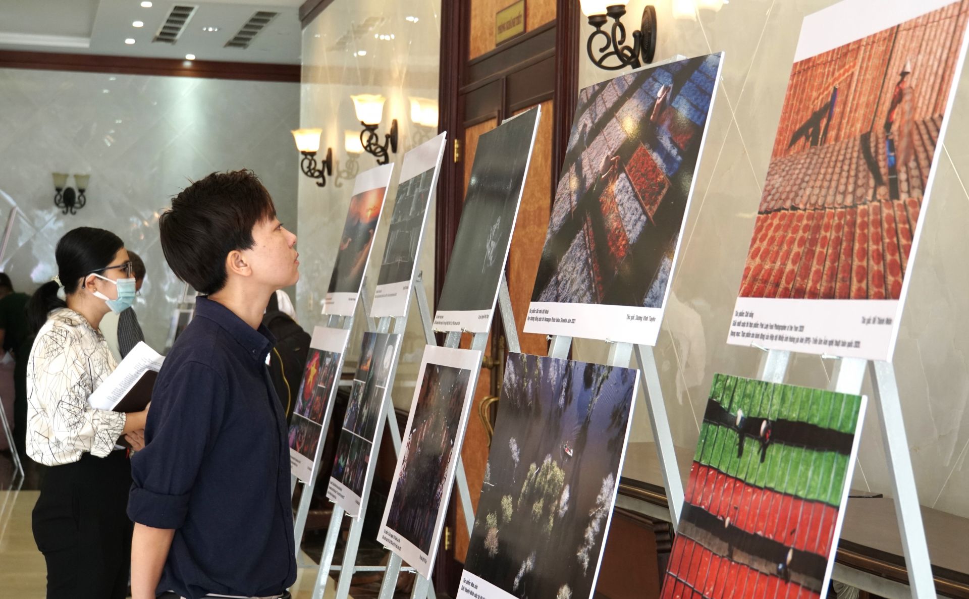 Đại biểu tham quan khu vực trưng bày sách và các tác phẩm VHNT.