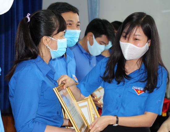 Bí thư Tỉnh đoàn Hoàng Thị Thanh Thuý trao bằng khen cho các tập thể, cá nhân.