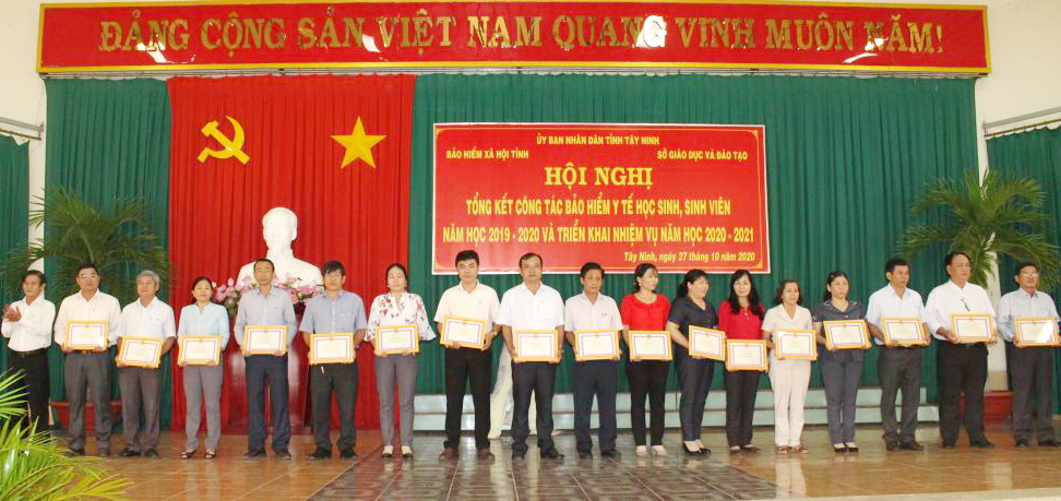 Dịp này, có 13 tập thể có thành tích xuất sắc trong thực hiện BHYT cho học sinh 2 năm học 2018-2019 và 2019-2020 được nhận bằng khen của UBND tỉnh; BHXH tỉnh trao giấy khen cho 54 tập thể vì đã có thành tích xuất sắc trong thực hiện công tác BHYT học sinh, sinh viên năm học 2019-2020.