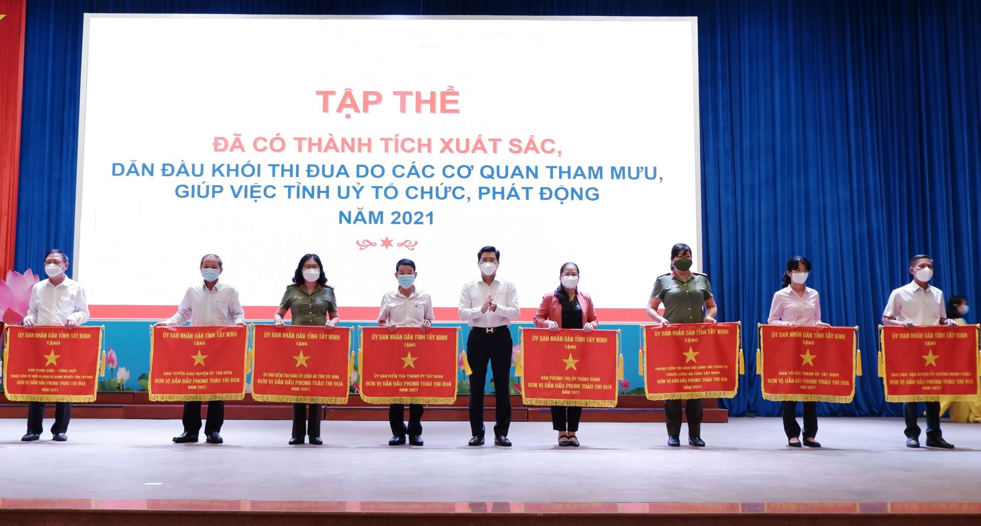 Hội nghị trao cờ thi đua, bằng khen cho các cá nhân, tập thể có thành tích xuất sắc trong năm 2021 và đạt giải trong cuộc thi Giải báo chí xây dựng Đảng “Giải Búa liềm vàng” tỉnh Tây Ninh lần thứ nhất năm 2021.