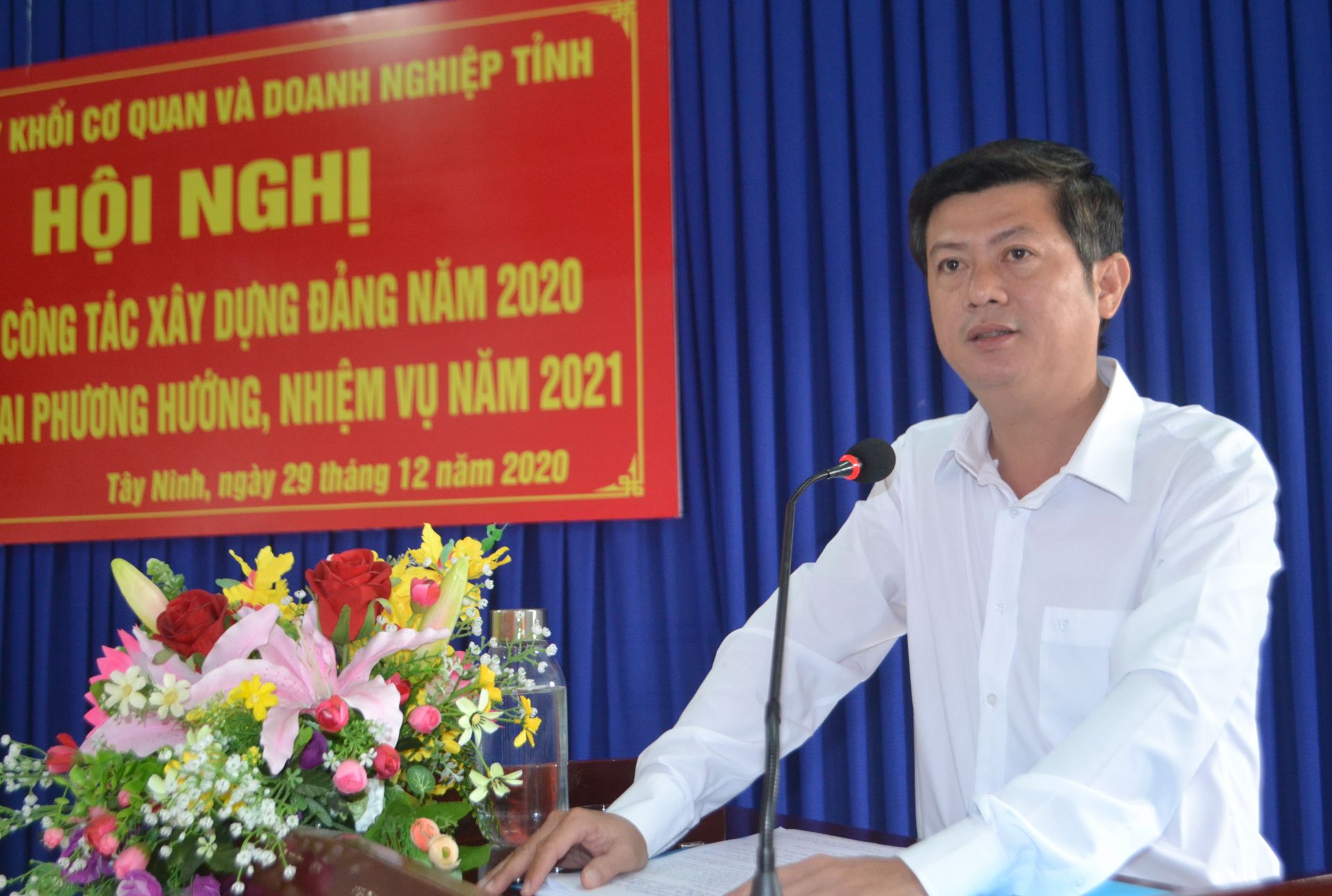 Chiều 29.12, ông Trần Lê Duy- Bí thư Ðảng uỷ khối Cơ quan và Doanh nghiệp tỉnh chủ trì hội nghị tổng kết công tác xây dựng Ðảng năm 2020 và triển khai phương hướng, nhiệm vụ năm 2021. Tham dự có Trưởng Ban Tổ chức Tỉnh uỷ Nguyễn Thị Yến Mai, Giám đốc Sở Nội vụ Nguyễn Ðài Thy và đại diện cấp uỷ 77 cơ sở Ðảng trong khối.