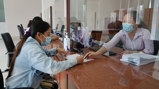 Khách hàng giao dịch tại Ngân hàng CSXH tỉnh.