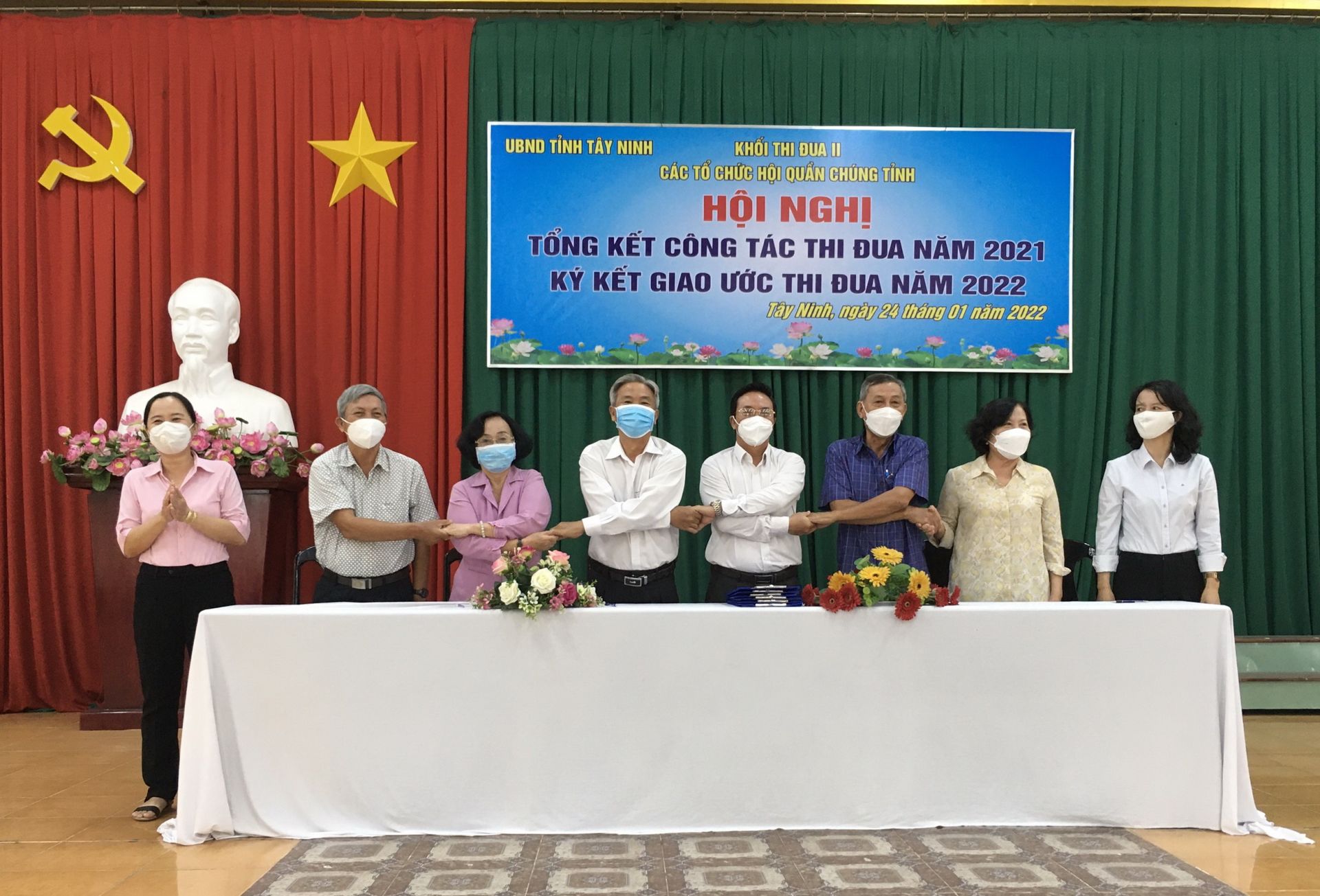 Kết quả bình xét thi đua tất cả các Hội đều đạt loại A, Hội Cựu Giáo chức đơn vị Khối trưởng được đề nghị tặng cờ thi đua, Hội Luật gia và Hội Người cao tuổi được đề nghị tặng bằng khen của UBND tỉnh. Hội nghị đã thông qua, quy chế, bảng điểm và ký kết giao ước thi đua, bầu Hội Nhà báo làm Khối trưởng thi đua năm 2022.