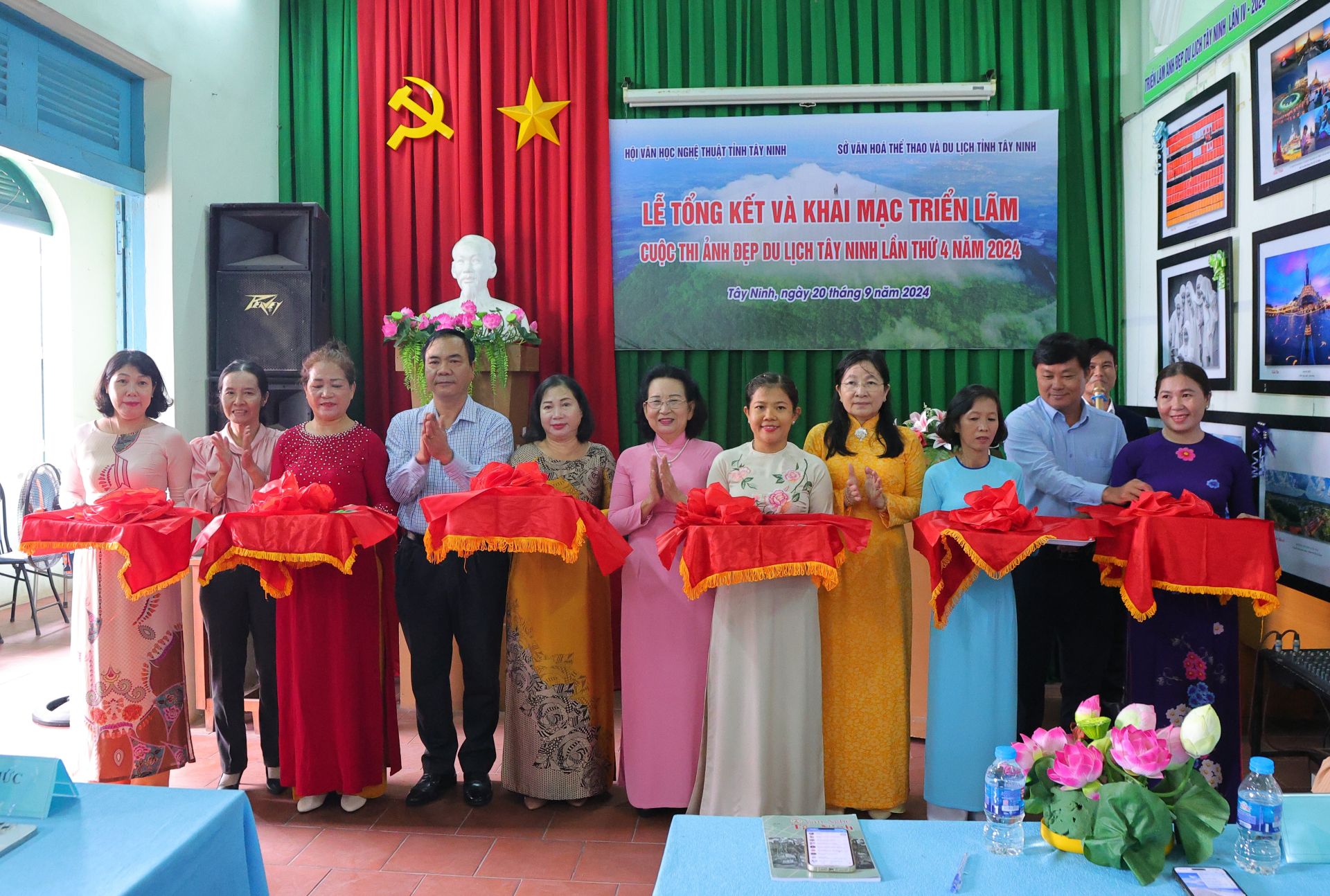 Nghi thức cắt băng khai mạc triển lãm ảnh đẹp du lịch Tây Ninh năm 2024 .