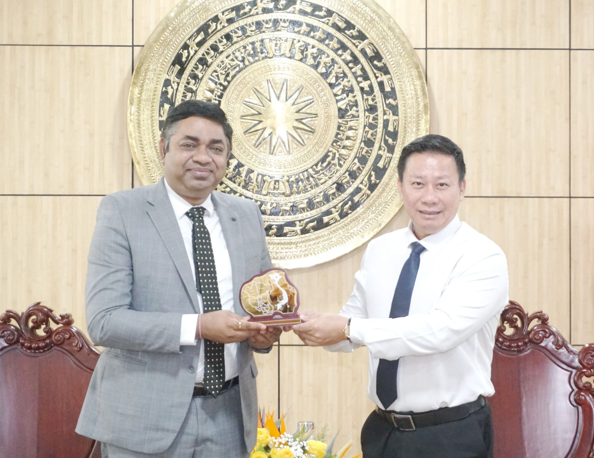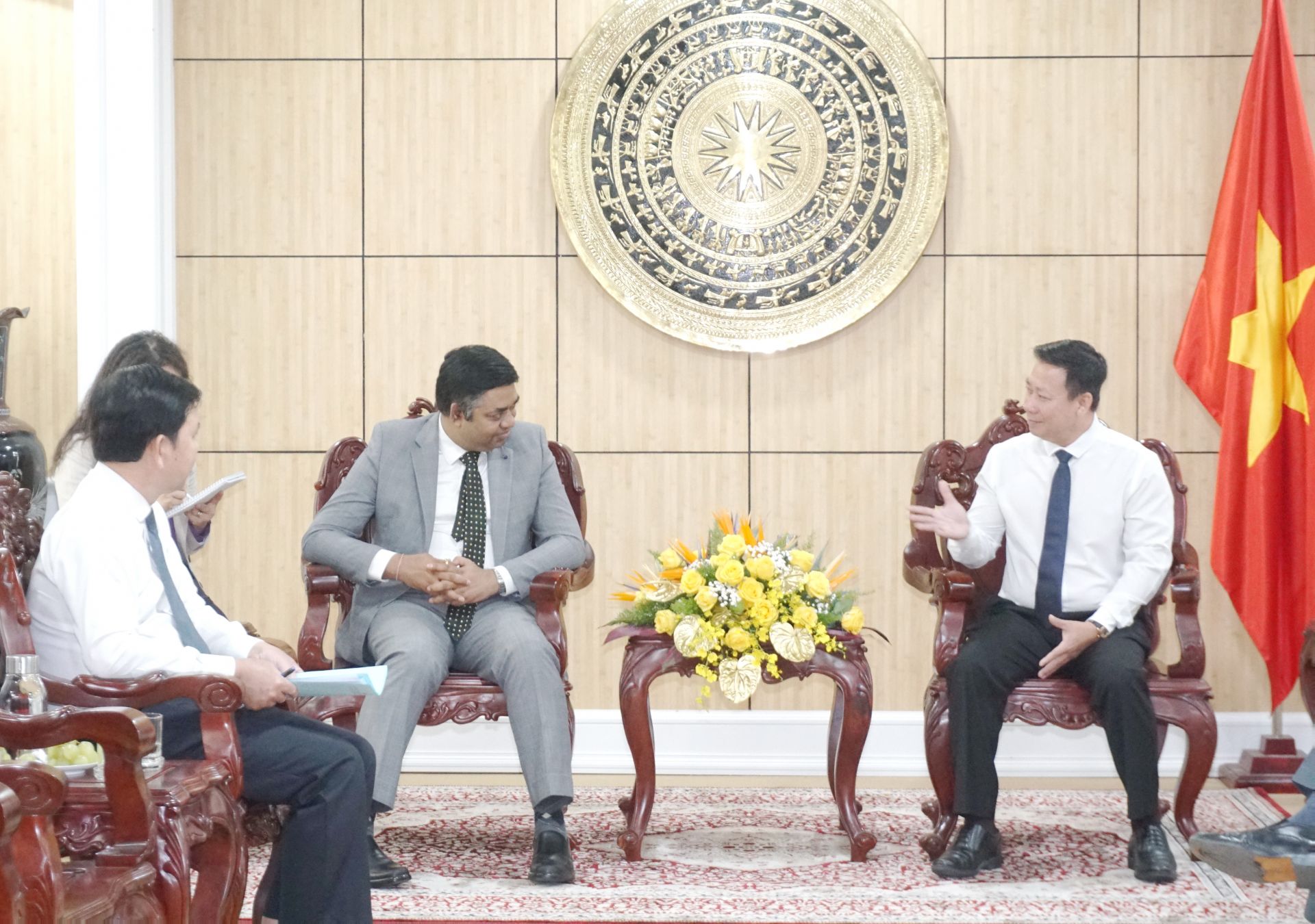 Ngày 5.1, tại Phòng Lễ tân Văn phòng UBND tỉnh, ông Nguyễn Thanh Ngọc- Phó Bí thư Tỉnh ủy, Chủ tịch UBND tỉnh tiếp ông Madan Mohan Sthi- Tổng Lãnh sự Ấn Độ tại TP.Hồ Chí Minh đến chào xã giao. Tiếp đón đoàn còn có lãnh đạo Sở Ngoại vụ, Sở Công thương, Sở Giáo dục và Đào tạo.