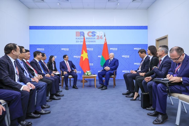 Ngày 24/10, nhân dịp tham dự Hội nghị các Nhà lãnh đạo BRICS mở rộng năm 2024 tại Kazan, Liên bang Nga, Thủ tướng Chính phủ Phạm Minh Chính đã gặp Tổng thống Cộng hòa Belarus Aleksander Lukashenko.