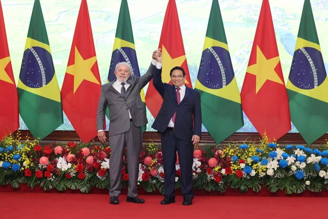 Tổng thống Lula da Silva và Thủ tướng Phạm Minh Chính cũng bày tỏ sự hài lòng về sự phát triển ấn tượng của thương mại song phương, với kim ngạch năm 2024 đạt xấp xỉ 8 tỉ USD và tái khẳng định quyết tâm đưa kim ngạch song phương lên mức 15 tỉ USD vào năm 2030.