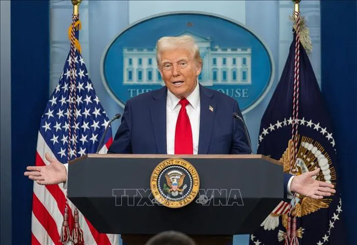 Tổng thống Mỹ Donald Trump phát biểu họp báo tại Nhà Trắng, Washington, D.C., ngày 30/1/2025. Ảnh: THX/TTXVN