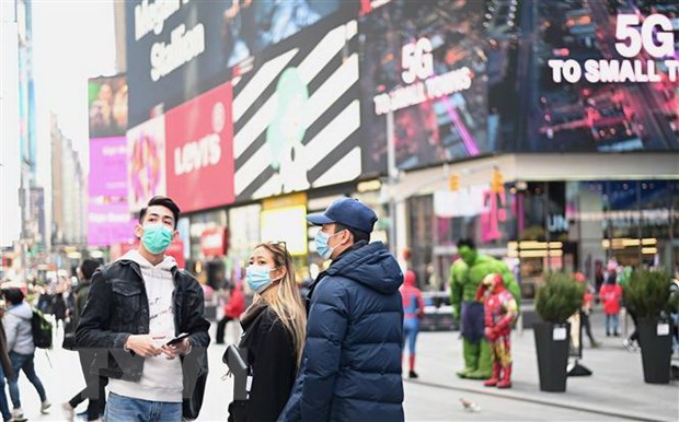 Người dân đeo khẩu trang nhằm ngăn chặn sự lây lan của dịch COVID-19 tại New York, Mỹ ngày 14/3/2020. (Nguồn: AFP/TTXVN)